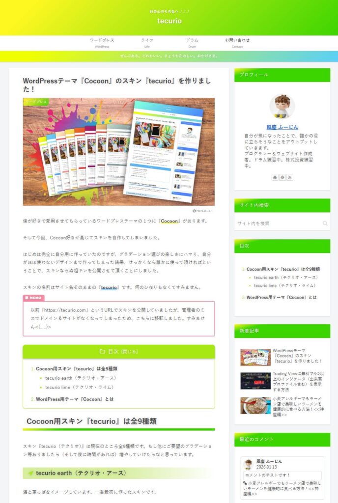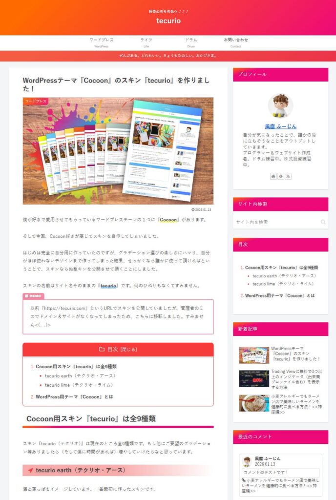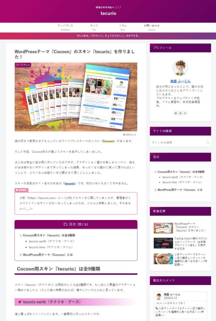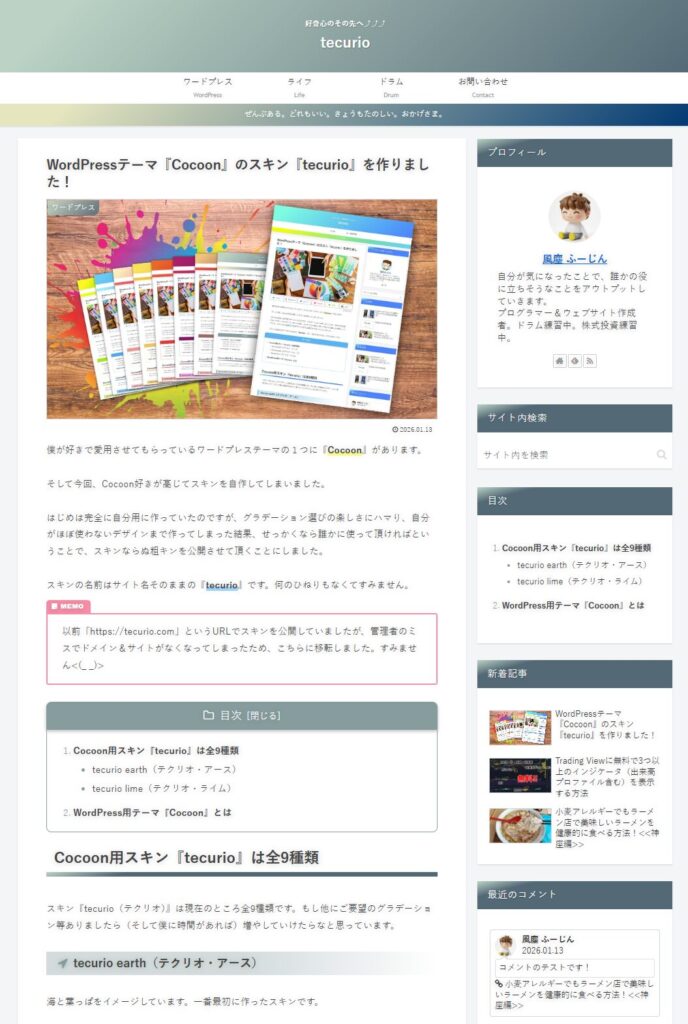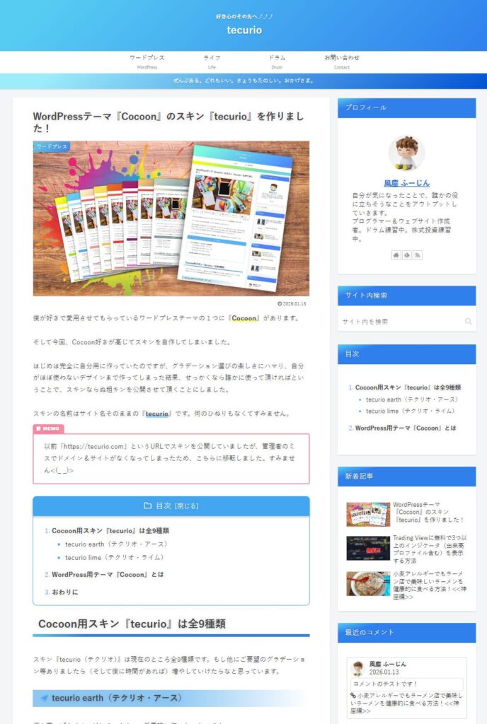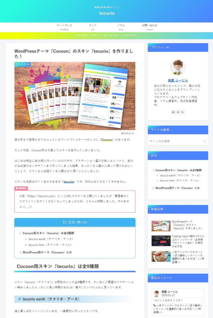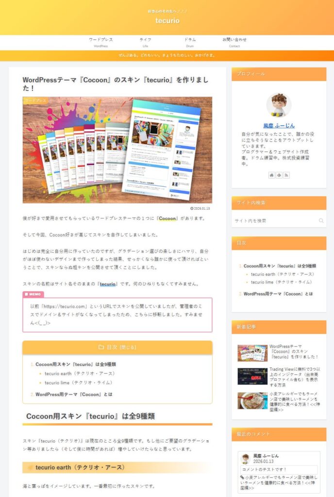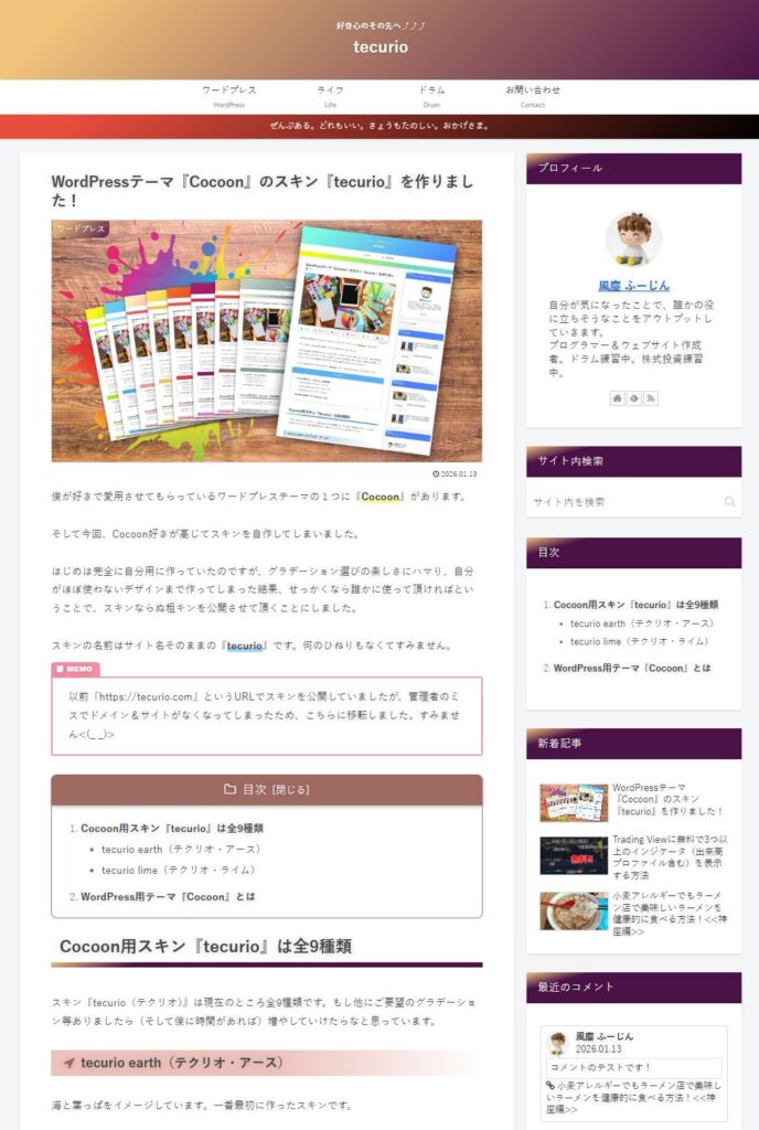 スキンの名前はサイト名そのままの『tecurio』です。何のひねりもなくてすみません。